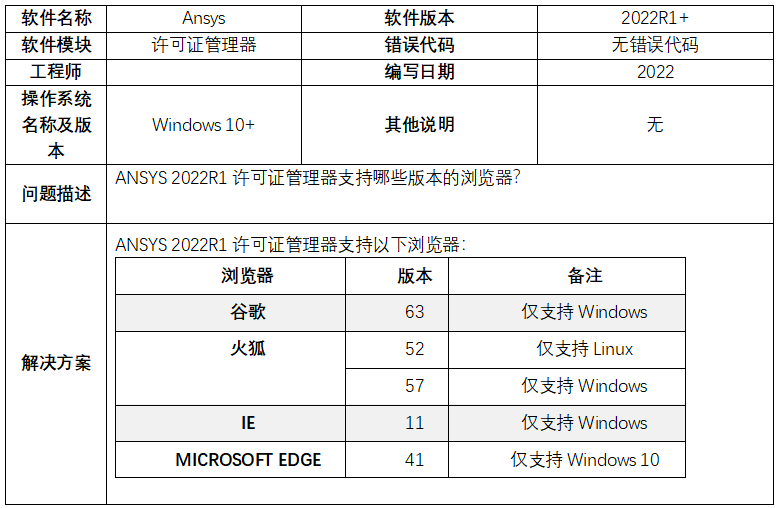 【ANSYS】軟件安裝問題及解決方案_2022R1+_ANSYS 2022R1許可證管理器支持哪些版本的瀏覽器-2022