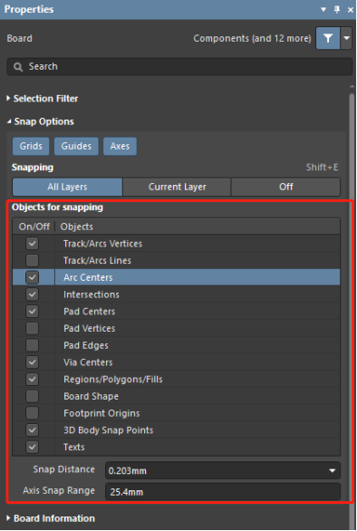 在PCB設計時精度要求較高,需要使用不同的捕捉對象和不同的捕捉距離,在Altium Designer中提供了多種的光標捕捉。
