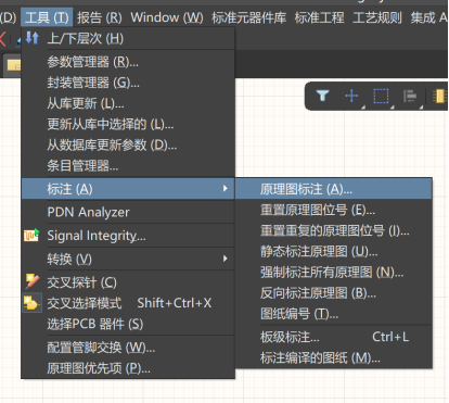 1. 執行菜單欄中的“工具”——“標注”——“原理圖標注”命令,或者按快捷鍵T+A+A