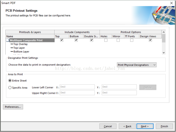 點擊Altium Designer中File->SmartPDF,設(shè)置將top layer 、bottom layer、 multi layer 設(shè)置為hide,分開生成top overlay、bottom overlay。注意:不能同時都生成top overlay、bottom overlay,因為如果同時生成,則底層絲印層和底層絲印層會重疊在一起。還要注意的是,在生成底層絲印層時,需要將絲印標(biāo)號“鏡像”,生成的絲印文件才是正常可讀的文件。具體操作請參考下文圖文步驟: