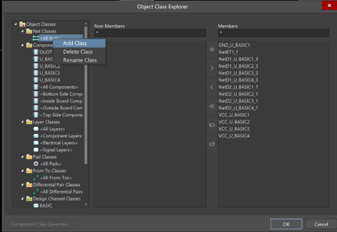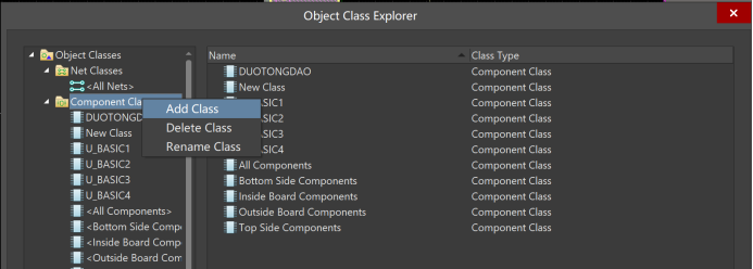 新建一個Class,并將需要歸為一類的元器件,從Non-Member列表中移動到Members列表,即可完成這一歸類。
