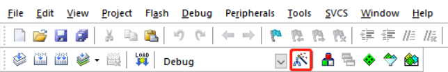 首先點擊菜單欄中Options for Target‘Debug’...圖標