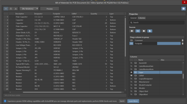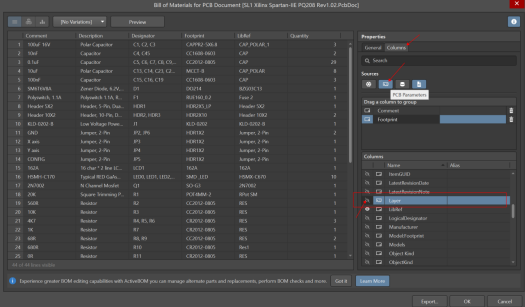 3. 進(jìn)行BOM表導(dǎo)出,導(dǎo)出的BOM表中就包含了Layer的信息。