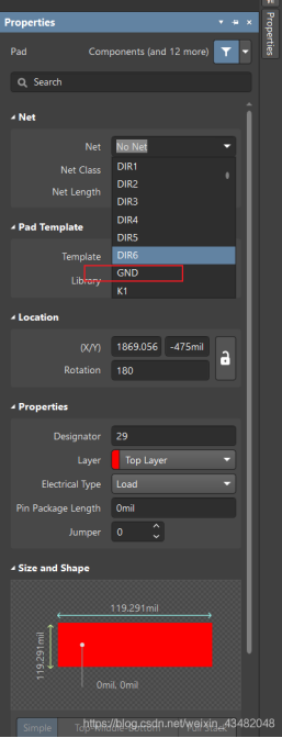 有些芯片封裝上有焊盤,需要打過孔接地,用于散熱等;但是直接打孔顯示錯誤,原因是該焊盤沒有將網絡連接到GND上,雙擊該焊盤設置分配個網絡即。