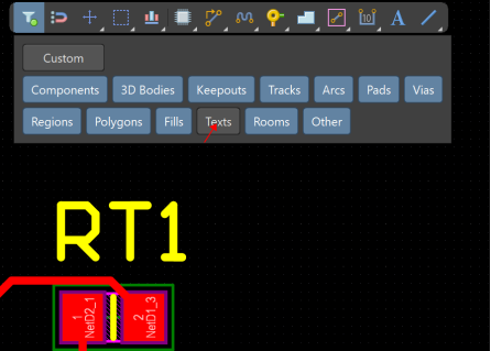1. 首先看一下過濾器,是否把Text給關掉了,導致無法選中絲印
