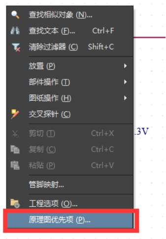 1.空白處 右鍵,點(diǎn)擊 原理圖優(yōu)先項(xiàng)