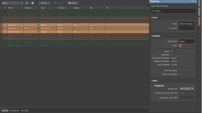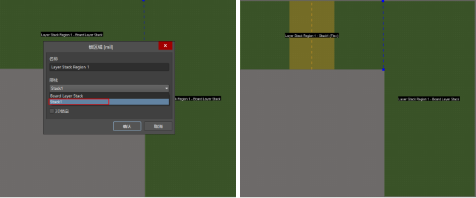雙擊柔性區域,在彈出的對話框中,在層棧的下拉選項中選擇柔性設置。