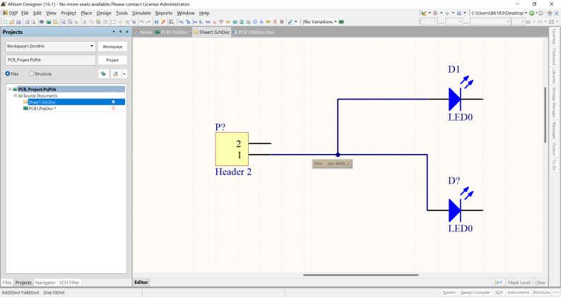 導入原理圖后,線路連接,在結點中放置一個焊盤。