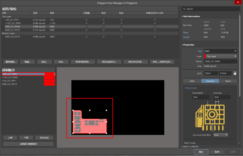 回到PCB中重新鋪銅即可。(快捷鍵,右鍵+YR)