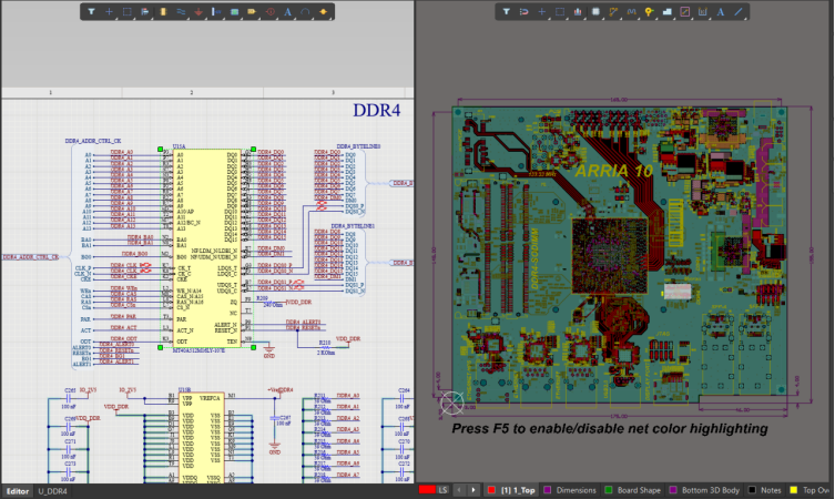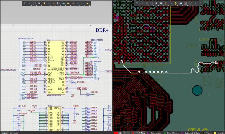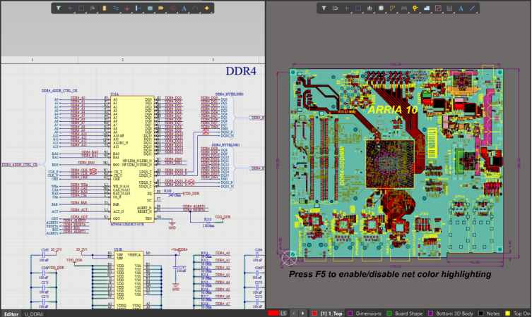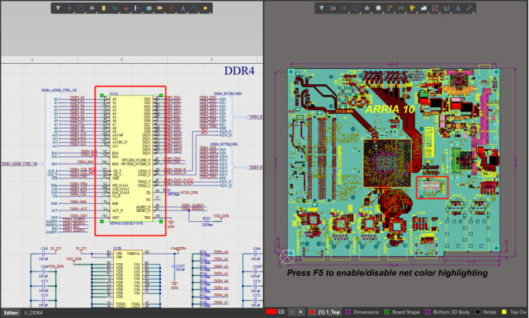 原理圖對(duì)應(yīng)網(wǎng)絡(luò)呈現(xiàn)高亮效果,其他所有網(wǎng)絡(luò)會(huì)變暗。
