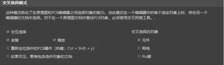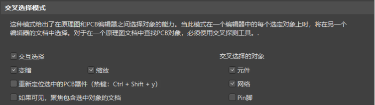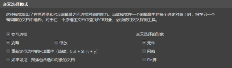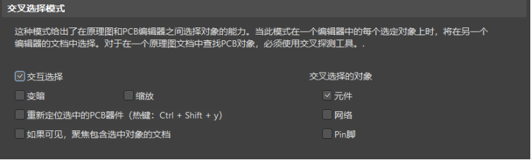 勾選“交叉選擇”,交叉選擇對(duì)象為“元件”,網(wǎng)絡(luò)對(duì)象同理。