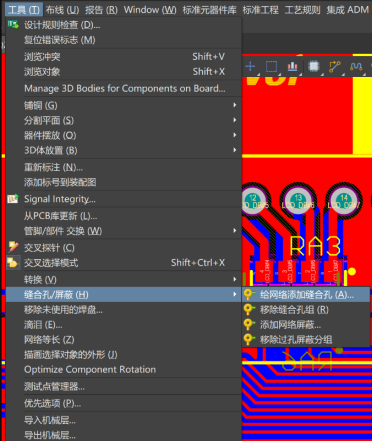 需要注意一下,給整板添加地過孔之前,需要對PCB頂層和底層整板覆上地銅皮,否則無法添加地過孔