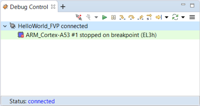 Arm Development Studio 鏈接?model 并顯示連接狀態(tài)在Debug Control 視圖中.