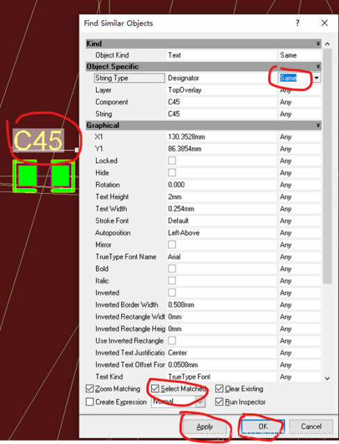 1.選中一個絲印,右鍵,“Find Similar Objects”