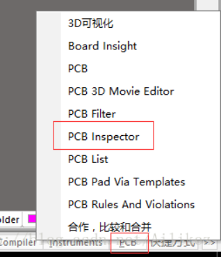 單擊PCB標(biāo)簽選中PCB Inspector,(或者按快捷鍵F11)