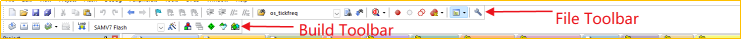 Keil MDK界面一共有兩個工具欄——文件工具欄和編譯工具欄。
