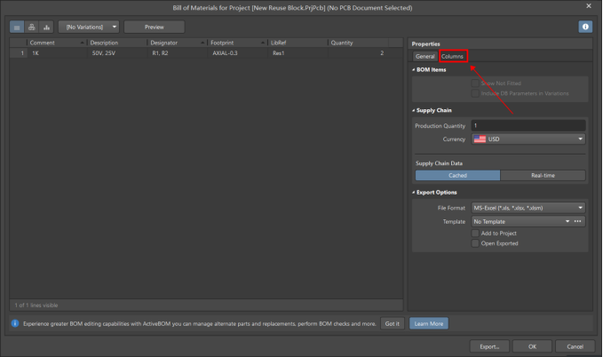 在BOM中點(diǎn)擊【Columns】;