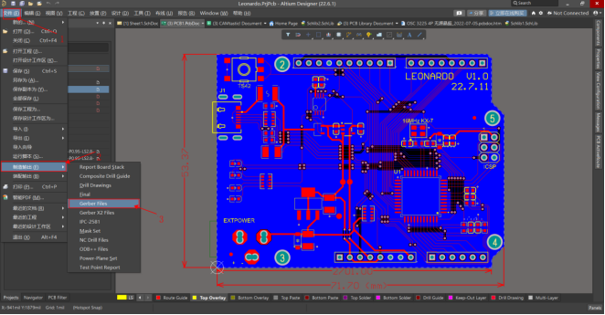 PCB文件界面中,菜單欄“文件”→“制造輸出”→Gerber File命令