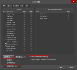 層選項(xiàng)卡中,在繪制層下拉框中選擇使用的,勾選“包括未連接的中間層焊盤(pán)”。