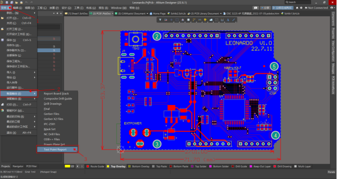 回到PCB文件界面中,菜單欄“文件”→“制造輸出”→Test Point Report命令。