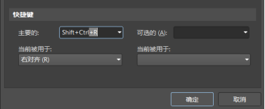輸入快捷鍵后當前信息被用于【右對齊】,有信息顯示存在快捷鍵沖突。