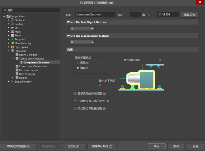 設(shè)計(jì) - 規(guī)則 - 將 Component Clearance 中的最小間距都改為 0。