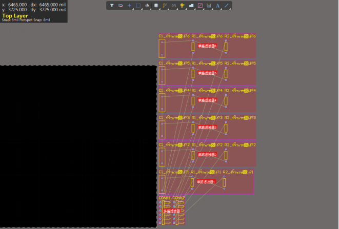 效果如下圖所示:該方法的好處在于不僅器件位號(hào)得以區(qū)分,同時(shí)加入了通道的標(biāo)識(shí),更加符合多通道操作的器件標(biāo)注。與原理圖對(duì)照使用時(shí)更加容易找到所需器件。