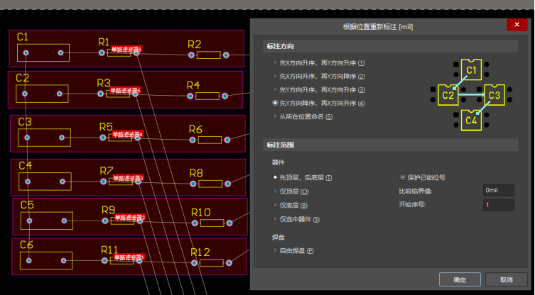 1.第一種方法,遇到器件命名雜亂,首先想到的是要將器件位號(hào)重新標(biāo)注一遍。