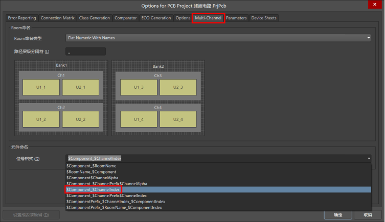 【Multi-Channel】 菜單下: 元件命名的 【位號(hào)格式】 下拉菜單選擇【$Component_$Channellndex】