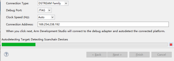 6 此時(shí)通過網(wǎng)線就可鏈接到DSTREAM,就可以進(jìn)行調(diào)試。